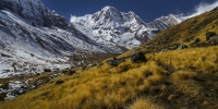 Today's trek is relatively short but steep as you make your way to Machhapuchhre Base Camp (MBC). The trail climbs steadily through rocky terrain and alpine meadows, offering stunning views of Machhapuchhre (Fishtail) and the surrounding peaks. Upon reaching MBC, you will be surrounded by towering cliffs and glaciers, with Annapurna South towering above you. You will spend the night at MBC, enjoying the tranquil atmosphere of this remote mountain sanctuary.